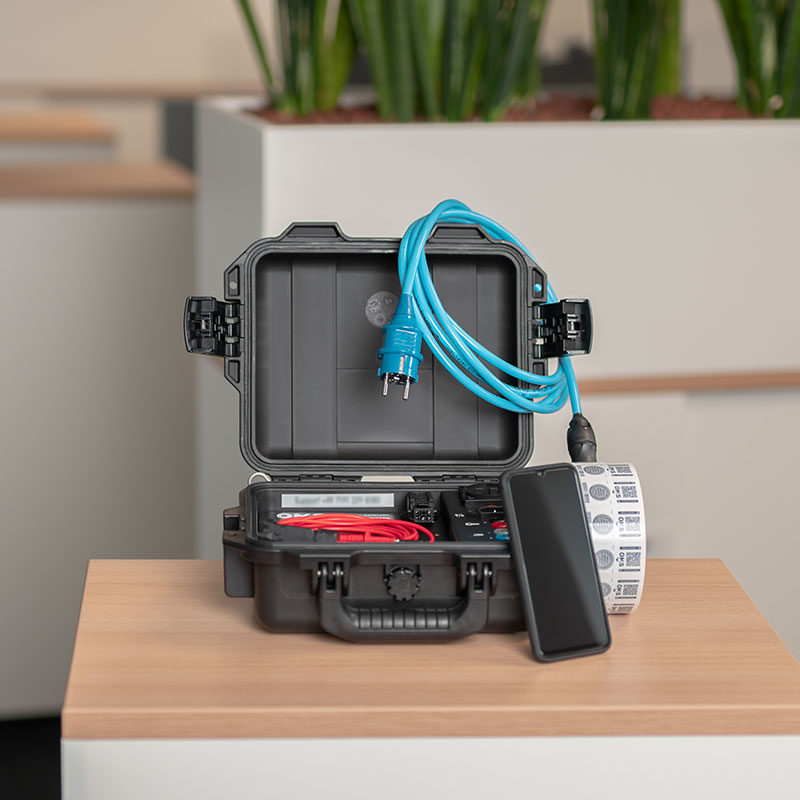 Die Lösung ist ein ganzheitliches Prüfsystem, mit dem elektrische Sicherheitsprüfungen durchgeführt und Dokumentationen vollautomatisch erstellt werden können. Die Dokumentation ist jederzeit über das OMS Kundenportal inklusive des digitalen Prüfsiegels einsehbar – und das alles direkt bei Ihnen vor Ort.